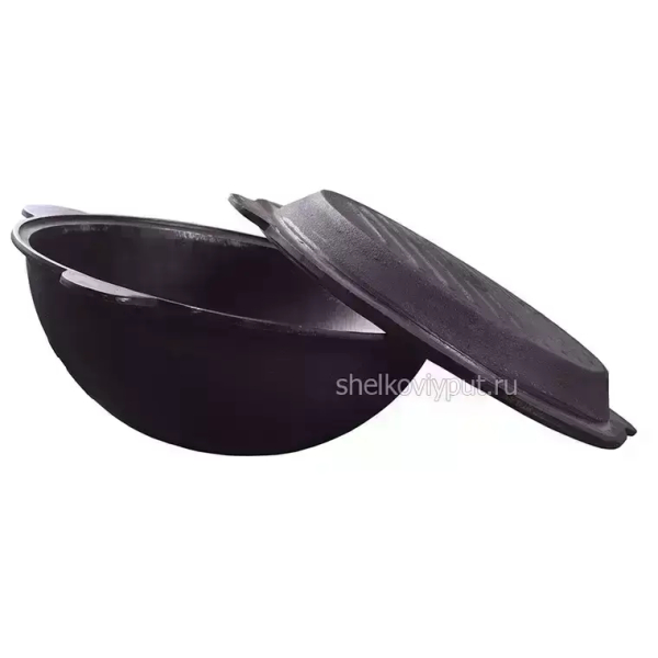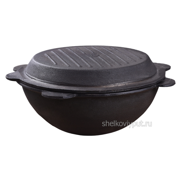 КАЗАН ЧУГУННЫЙ 12Л УЗБЕКСКИЙ (КРУГЛОЕ ДНО) С КРЫШКОЙ-СКОВОРОДОЙ