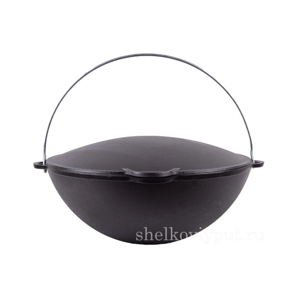Чугунный казан объёмом 15 литров с круглым дном – идеальная посуда для приготовления плова, лагмана, шурпы и множества других блюд восточной (и не только) кухни. Правильное приготовление еды обеспечивает не только конструкция самого казана, но и очень плотно прилегающая массивная крышка из чугуна, которая позволяет тушить и томить рис, мясо, овощи, а также другие ингредиенты в процессе создания кулинарных шедевров. Входит в категорию казанов среднего размера. Объём 15 литров даёт возможность вкусно накормить большую семью или компанию из 8-11 человек. Шарообразная форма и круглое дно позволяют пище прогреваться быстрее и более равномерно. В сочетании с толстыми стенками это обеспечивает медленное томление продуктов без пригорания даже без постоянного перемешивания лопаткой или шумовкой. Для того чтобы 15-литровый казан было удобнее снимать с костра, производителем предусмотрены 4 литые ручки. Вес изделия – 12 кг. Чугунная крышка также имеет ручку, при помощи которой её можно легко поднимать в процессе готовки.