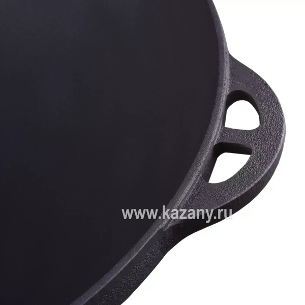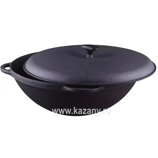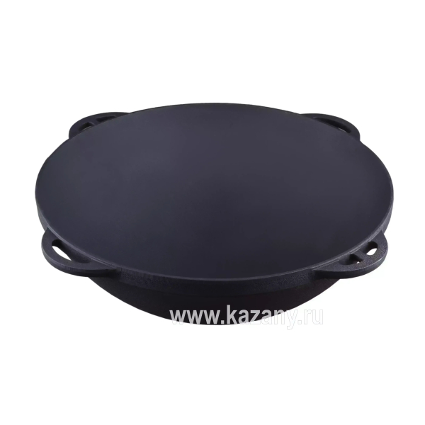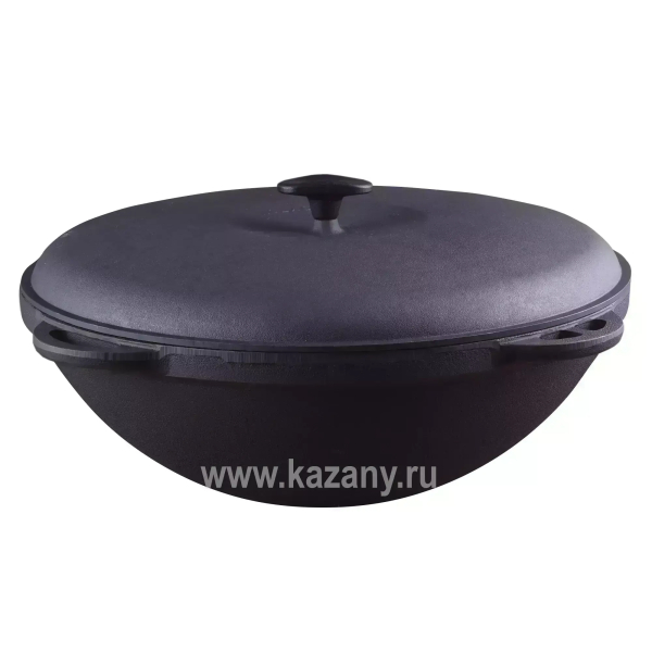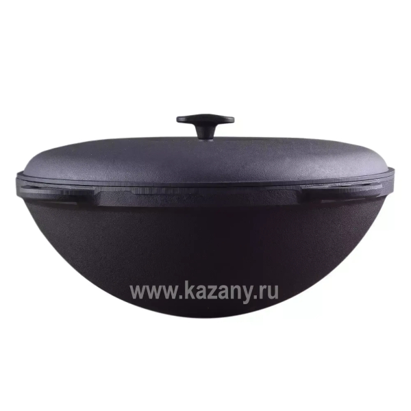 Входящий в комплект чугунный казан изготовлен в Узбекистане. Неповторимый вкус готовых блюд обеспечивает плотно прилегающая крышка обычной формы из толстостенного алюминия. Казан имеет классическое круглое дно, а также четыре эргономичных ручки для переноски. Как и другая чугунная посуда, неприхотлив в уходе и имеет практически неограниченный срок службы.