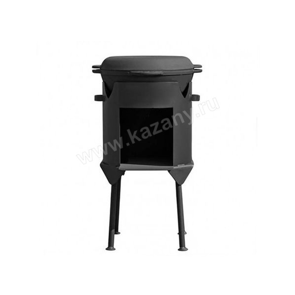 Печь изготовлена из стали толщиной 3 мм и покрыта экологичным защитным составом, который надёжно защищает стальные поверхности от воздействия продуктов коррозии и одновременно обеспечивает исключительную термостойкость. Для размещения печи на ровной поверхности предусмотрены 4 съёмные ножки со специальными опорами. Высота печи полностью соответствует габаритам 12-литрового казана.