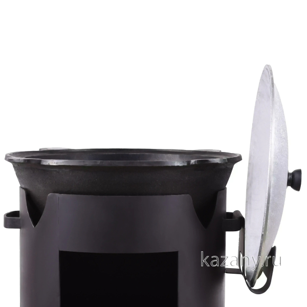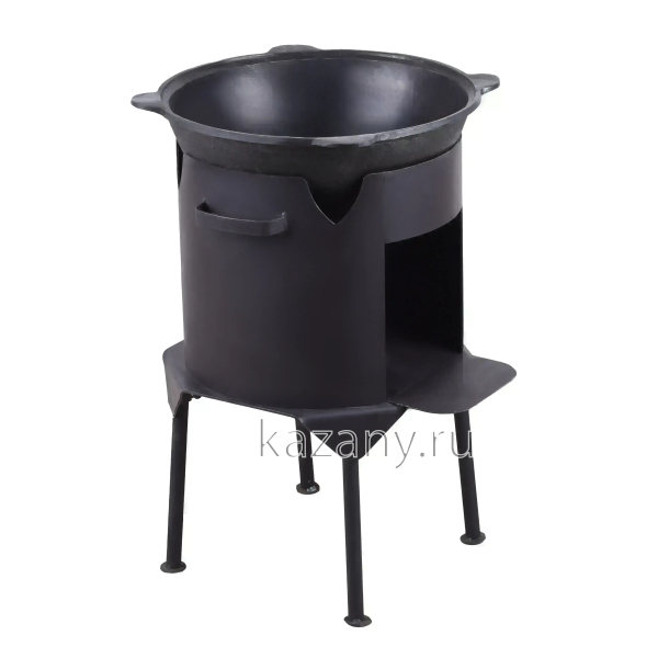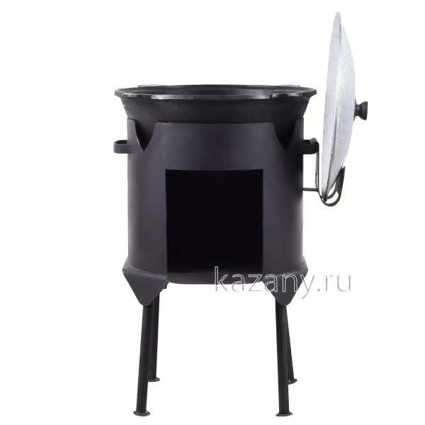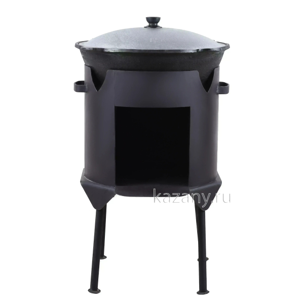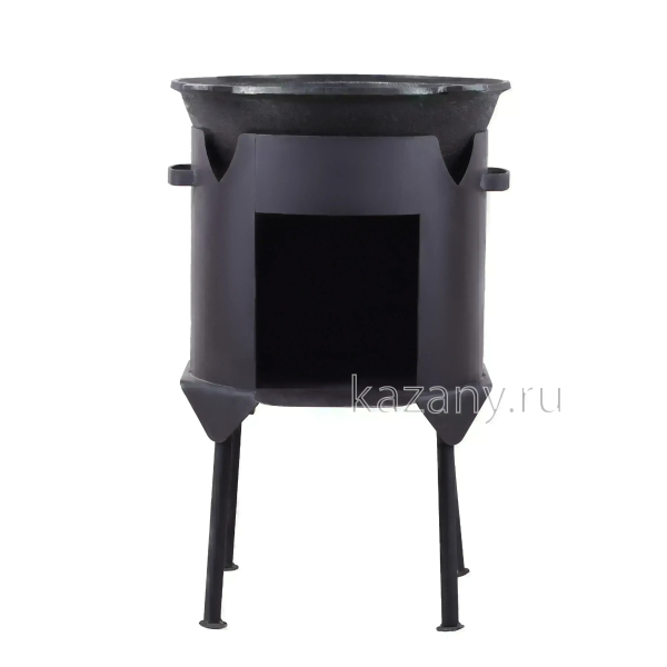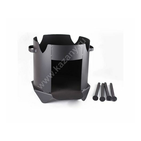 Стальная печь изготовлена из 3-миллиметрового листа, окрашенного особым термостойким составом, который надёжно защищает поверхности от коррозии и множества других негативных факторов. Печь имеет четыре устойчивые съёмные ножки и весит всего 10 кг. Для переноски по бокам печи предусмотрены две прочные стальные ручки. Несмотря на свою простоту, такая конструкция отлично справляется с возложенными на неё задачами.