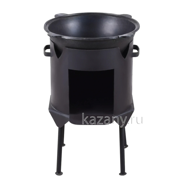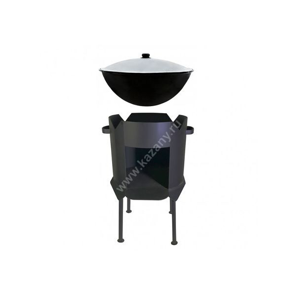 Печь имеет простую, но продуманную конструкцию. Изготовлена из высокопрочной термоустойчивой стали с толщиной стенок 3 мм. Для повышения термостойкости, а также способности сопротивления коррозии окрашена защитным лакокрасочным составом. В конструкцию входят четыре съёмные ножки, которые позволяют установить печь на любой ровной поверхности без риска переворачивания. При необходимости печь можно использовать с другими казанами (объём от 8 до 10 литров), а также саджами, сковородами и прочей посудой для открытого огня.