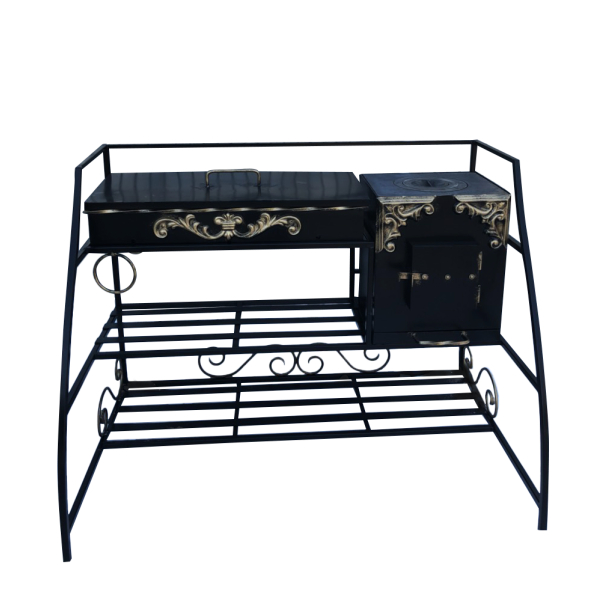 Жаровня,Печка,Дымоход,Колосник,Совок,Кочерга,Съемное кольцо под казан,Полка