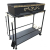 Жаровня изготовлена их листовой стали толщиной 3 мм. Она установлена на столешницу тележки. Оборудована двумя зольниками, так что проблем с чисткой мангала и пользователя не возникает. Длинная стенка жаровни украшена коваными декоративными элементами под «золото». Такое же покрытие нанесено на ручки зольников и самого мангала.