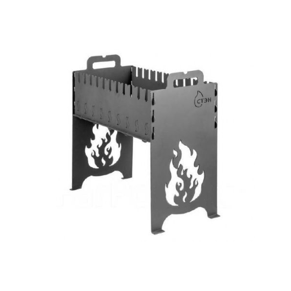 Мангал СТЭН отличается от большинства своих собратьев отсутствием трубчатого каркаса. Он состоит из пяти деталей: