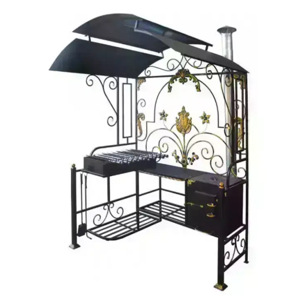 Мангал с крышей “Люкс” – отличный вариант для тех, кто привык выбирать лучшее. Ведь в этой конструкции идеально все – и функциональность, и хорошая вместительность, и неповторимый стильный дизайн. В комплекте идет жаровня, мангал, разделочный столик. Жаровня и мангал съемные, поэтому готовить блюда на огне вы сможете не только на своем дачном или придомовом участке, но и во время поездок на рыбалку или пикник.