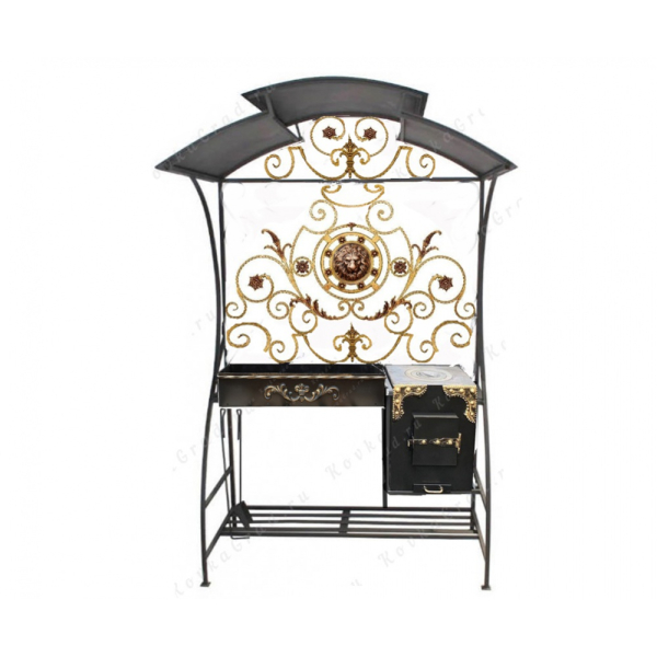 Мангал с печкой и крышей “Лев” – это гармоничное сочетание удобного функционала и стильного дизайна. В производстве красивой литой модели использованы элементы градации и кованые орнаменты.