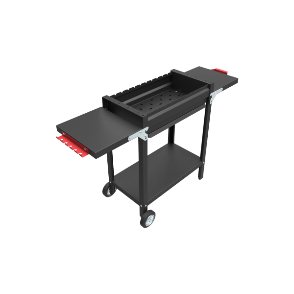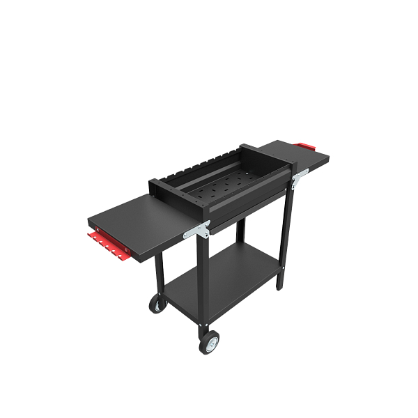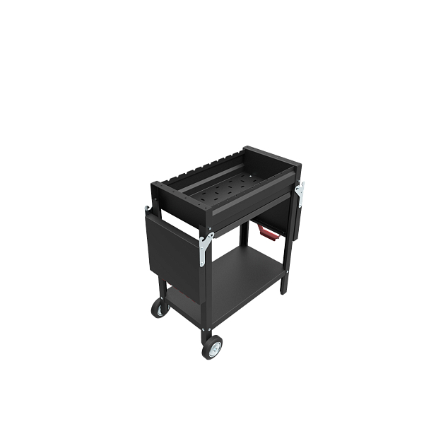 - Одна из полок снабжена рукояткой для перемещения (устанавливается на стороне противоположной колесам)
