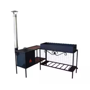 В комплектекрышка для печи в подарок. Кочерга и совок в комплект не входят Габариты жаровни, мм1000 х 350 х 170 Габариты печи, мм370х530х435 Кованый декорДа Комплектация мангала5 решеток гриль