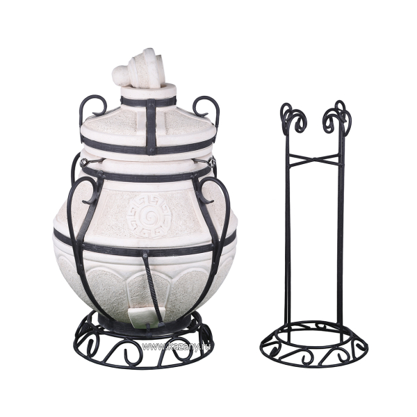 Тандыр выделяется своими эстетическими характеристиками - у него красивые выразительные формы. Стенки жаровни усилены с помощью металлического кованого каркаса, который гарантирует долговечность печи. При эксплуатации на стенках может возникнуть сеть микротрещин, которая появляется по естественным причинам. Микроскопические трещины не являются следствием дефекта. Изделие с таким натуральным узором служит десятки лет.