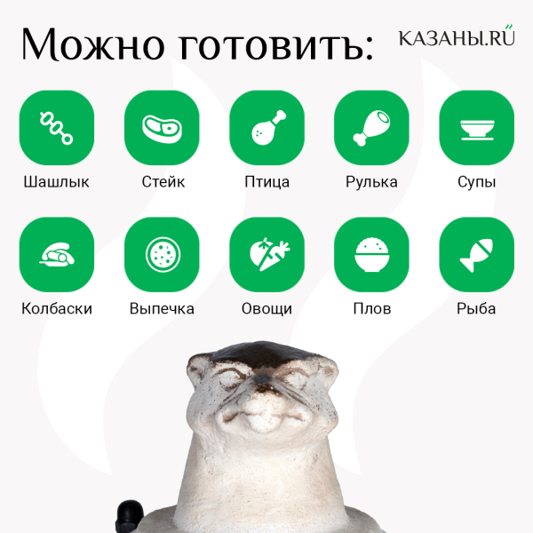 Печь отличается компактными размерами, уменьшенной толщиной стенок, небольшой горловиной. Ее можно использовать для приготовления различных блюд: