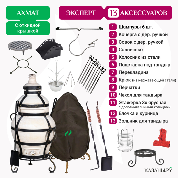 Набор "Эксперт": Тандыр "Ахмат" с откидной крышкой" + аксессуары