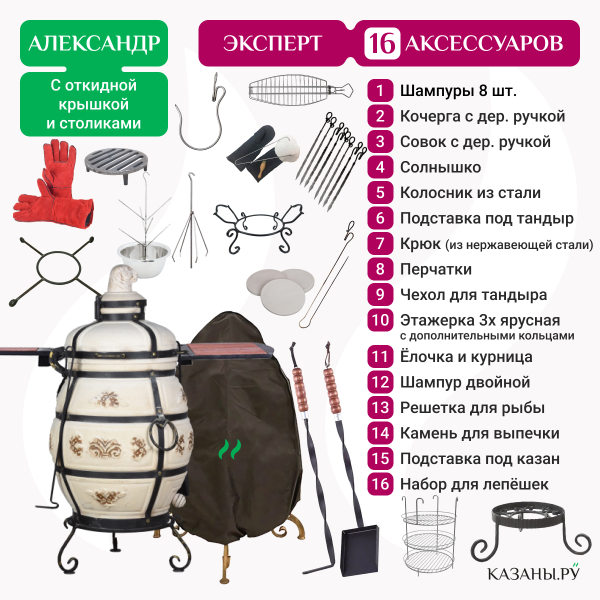Набор "Эксперт": Тандыр "Александр" с откидной крышкой, со столиками + аксессуары