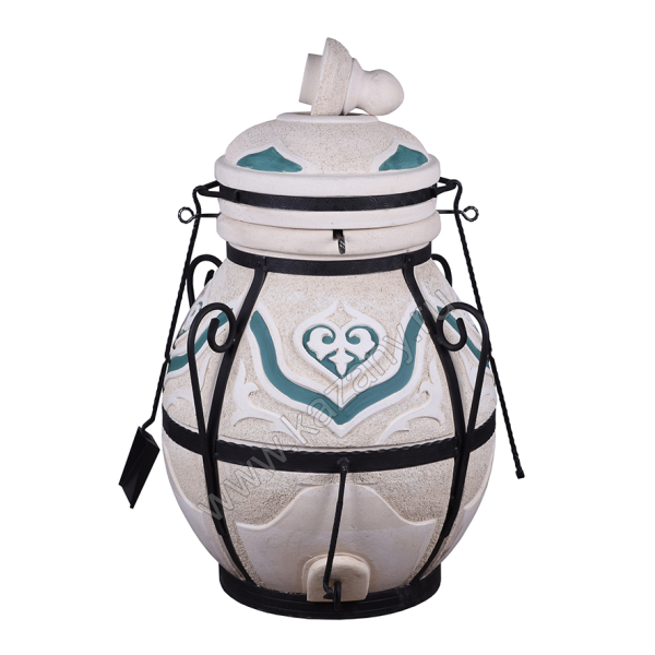 Печь изготовлена из керамической глины, частично смешанной с овечьей шерстью. В процессе обжига шерсть сгорает, оставляя поры в структуре стенок. Толщина стенок тандыра составляет 8 см, чтобы позволяет печи лучше сохранять тепло и медленно отдавать его в камеру. У модели более мощная конструкция - толстые стенки делают эту печь тяжелой, емкой и универсальной.