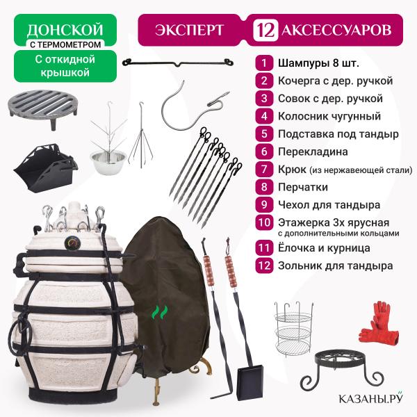 Набор "Эксперт": Тандыр "Донской" с термометром, с откидной крышкой" + аксессуары