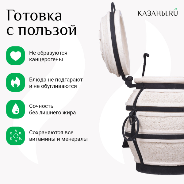 Тандыр отлично подходит для приготовления блюд на природе, за городом. Его несложно погрузить на машину, чтобы взять с собой. В отличие от костров и самодельных мангалов, печь не оставляет после себя следов и полностью безопасна - риск пожара исключен. Блюда в жаровне получаются более вкусными и ароматными, чем на открытом огне. Используя дрова или брикеты, можно придать блюдам натуральный древесный аромат.