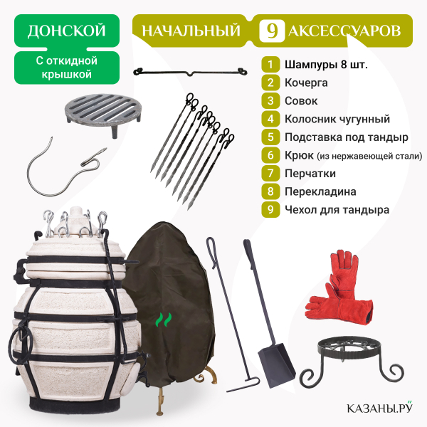 Набор "Начальный": Тандыр "Донской" с откидной крышкой" + аксессуары