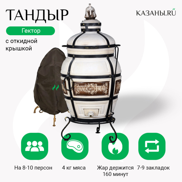 Тандыр "Гектор" - керамическая восточная печь среднего размера, предназначенная для приготовления блюд из птицы, мяса, дичи, морепродуктов, теста. Это жаровня среднего размера, она идеально подходит для приготовления пищи в частном доме.