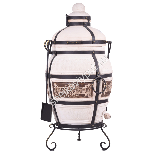 В комплектации предусмотрено все необходимое для ухода за печью. Чтобы можно было полностью очистить зольную камеру, поставляется удлиненная кочерга. В камеру тандыра блюда загружают, используя различные аксессуары: этажерки, формы, решетки, шампуры, чугунки.