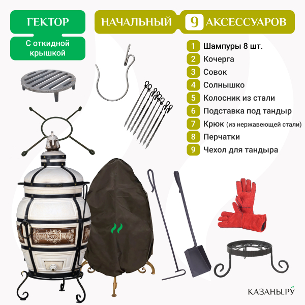 Набор "Начальный": Тандыр "Гектор" с откидной крышкой + аксессуары