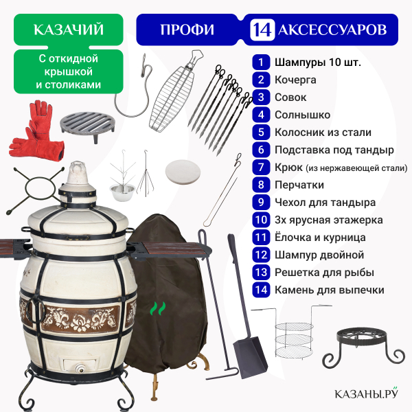 Набор "Профи": Тандыр "Казачий" с откидной крышкой, со столиками + аксессуары