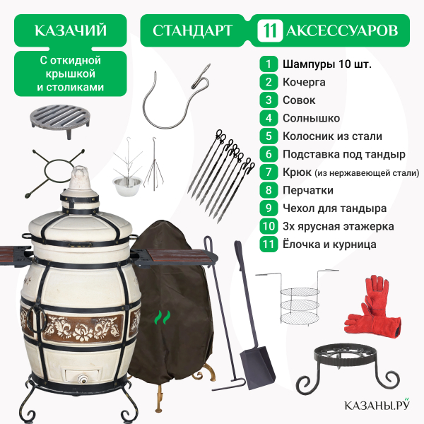 Набор "Стандарт": Тандыр "Казачий" с откидной крышкой, со столиками + аксессуары