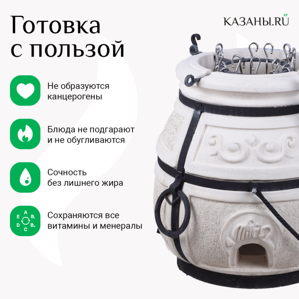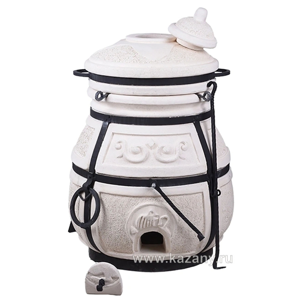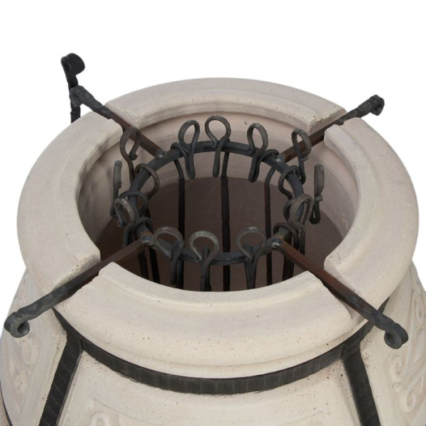 Тандыр "Скиф" - восточная печь средних размеров, изготовлена из экологичной глины. Стенки печи усилены стальным каркасом. На каркасе предусмотрены ручки в виде колец, за которые тандыр можно поднять.