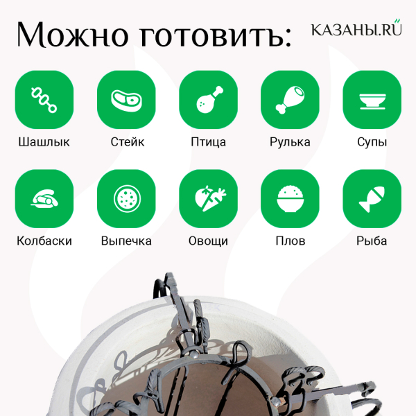 В печи можно готовить разнообразные блюда: птицу, мясо, рыбу и морепродукты. В тандыре получается вкуснейшая восточная выпечка - любители лепешек, самсы, хачапури сразу заметят разницу. Можно ставить на печь казан, что расширяет перечень доступных блюд. Тандыр - это возможность готовить вкусную и полезную еду с минимальными расходами.