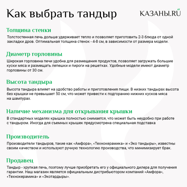 Тандыр отлично подойдет тем, кто увлечен национальной кухней и хочет получить отличную печь для домашнего использования. Это производительный и надежный очаг, который отличается: