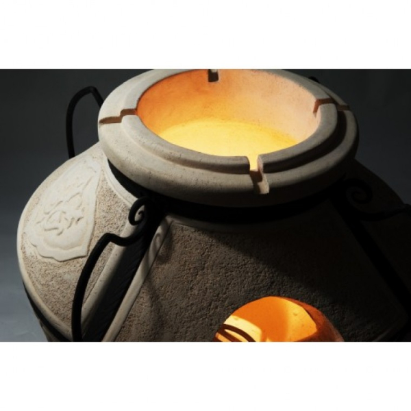 Печь долго отдает тепло за счет толстых стенок. Это позволяет более экономно расходовать дрова (брикеты). После растопки тандыр пригоден для приготовления блюд в течение 2-3 часов. Можно продлить этот срок за счет использования жароотсекателя. Широкое основание жаровни позволяет оптимально распределять тепло.
