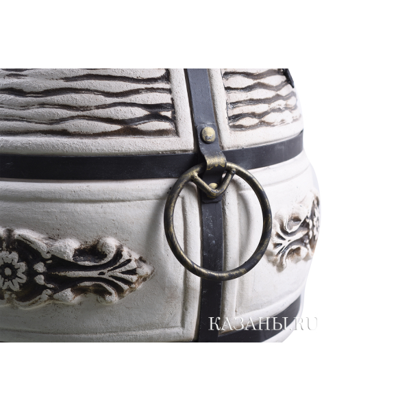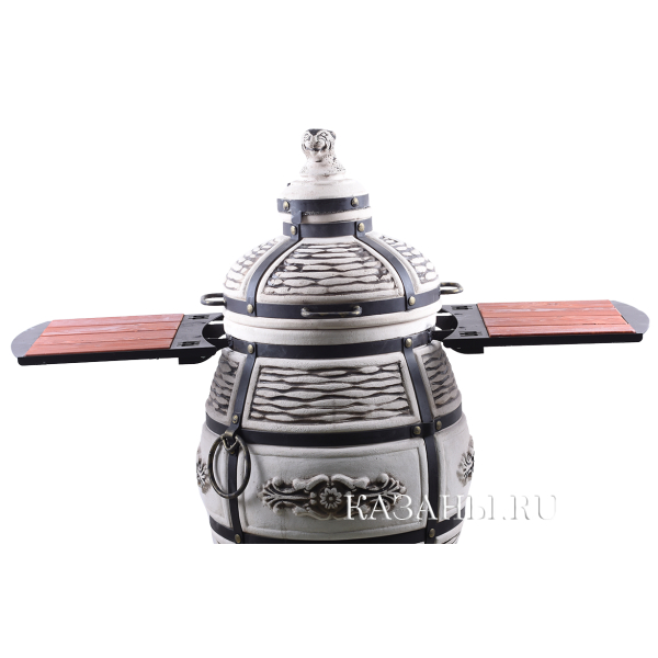 Тандыр "Барс" с откидной крышкой - большой очаг для приготовления вкусных восточных блюд. Печь оформлена к классическом стиле, на стенках есть растительный декор, выделенный полосой на общем фоне.