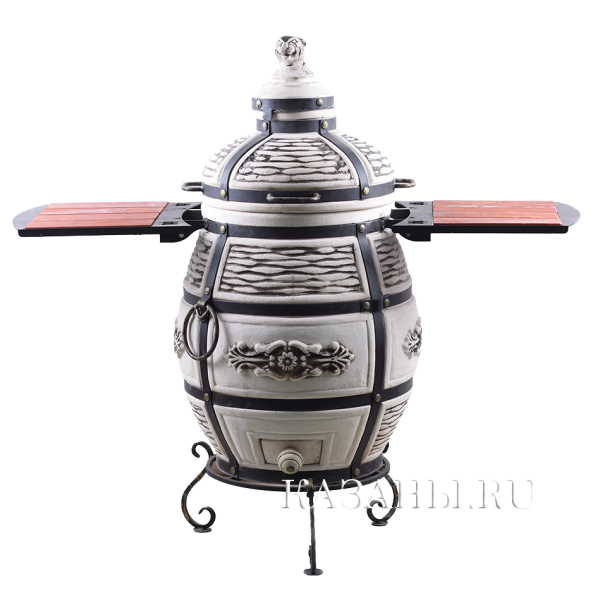 Высота жаровни составляет 99 см, без крышки - 69 см. Печь не занимает много места, несмотря на свою производительность. Ее диаметр в самой широкой части - 59 см, а диаметр горловины - 33 см. Под такую горловину несложно выбрать комплектующие, которые расширяют возможности при приготовлении блюд - их довольно много.