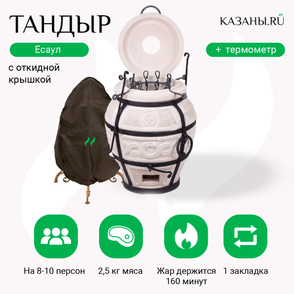 ТАНДЫР "ЕСАУЛ" С ТЕРМОМЕТРОМ, С ОТКИДНОЙ КРЫШКОЙ
