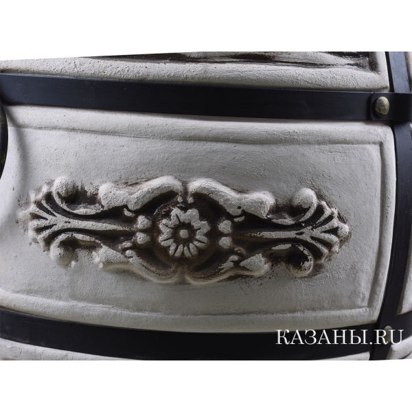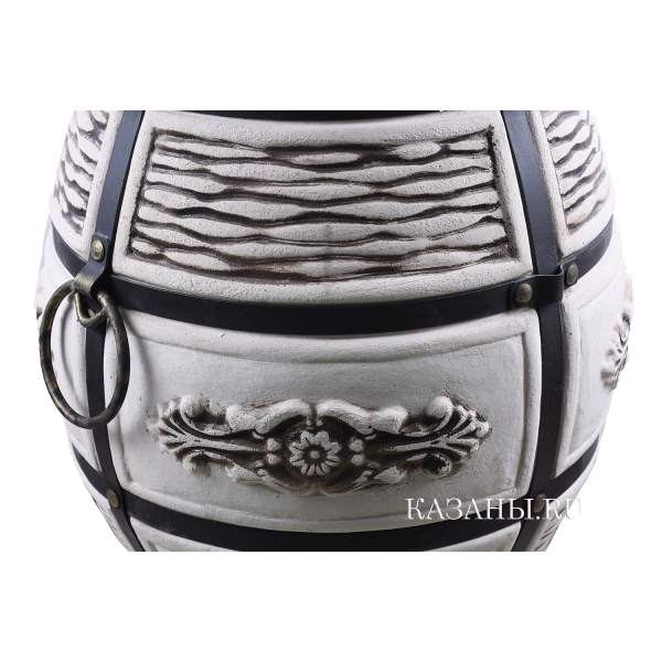 Тандыр "Барс" с откидной крышкой - большой очаг для приготовления вкусных восточных блюд. Печь оформлена к классическом стиле, на стенках есть растительный декор, выделенный полосой на общем фоне.