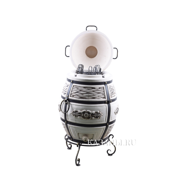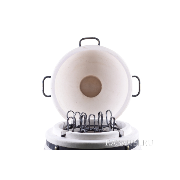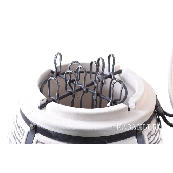 Большой диаметр горловины открывает возможность для выбора различных аксессуаров: 3-ярусных этажерок, елочек, специальных камней. Это увеличивает производительность очага. Увеличенная глубина камеры печи делает его еще более производительным - в тандыре можно приготовить шашлык на больших шампурах. В модели двойная крышка. Чтобы проверить готовность блюда, достаточно поднять самую верхнюю - это значительно легче.