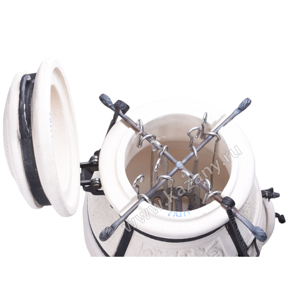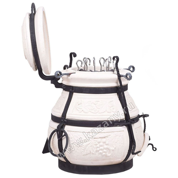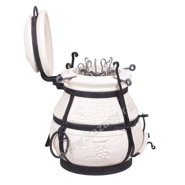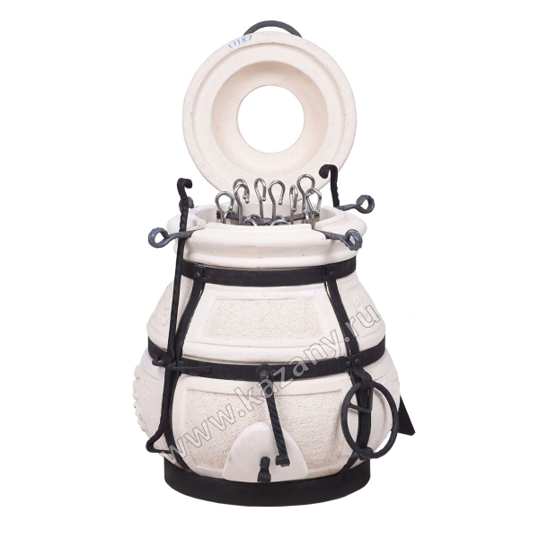 Погружать и выгружать печь легко благодаря удобным металлическим ручкам-кольцам, закрепленным на обручах, обхватывающих тандыр. Можно поставить печь в багажное отделение автомобиля, а подставка обеспечит ей статичность.