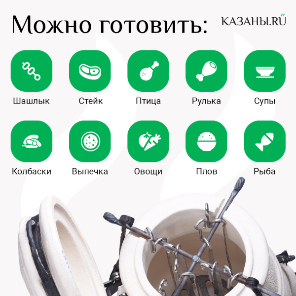 Печь используется для приготовления восточных блюд из мяса, морепродуктов (в том числе рыбы), овощей, круп. В тандыре готовят вкусную выпечку: самсу, лепешки, хачапури. При необходимости можно подобрать дополнительные аксессуары к жаровне, учитывая ее технические параметры: диаметр горловины, глубину.