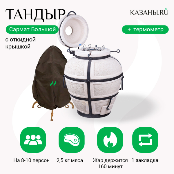 ТАНДЫР "САРМАТ БОЛЬШОЙ" С ТЕРМОМЕТРОМ, С ОТКИДНОЙ КРЫШКОЙ