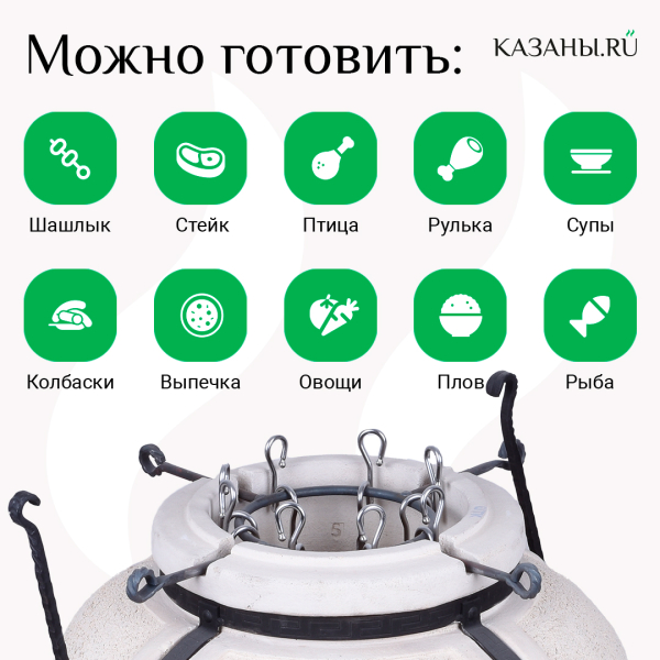 После растопки можно использовать разогретый тандыр в течение 2 часов, этого достаточно для нескольких порций мяса. Взяв дополнительно жароотсекатель, можно продлить это время в 2 раза.