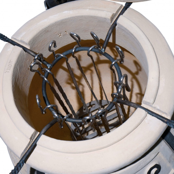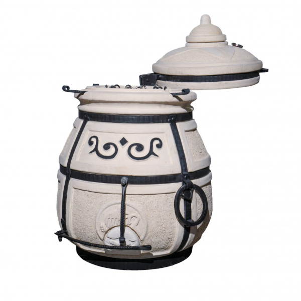 Тандыр "Скиф" - восточная печь средних размеров, изготовлена из экологичной глины. Стенки печи усилены стальным каркасом. На каркасе предусмотрены ручки в виде колец, за которые тандыр можно поднять.
